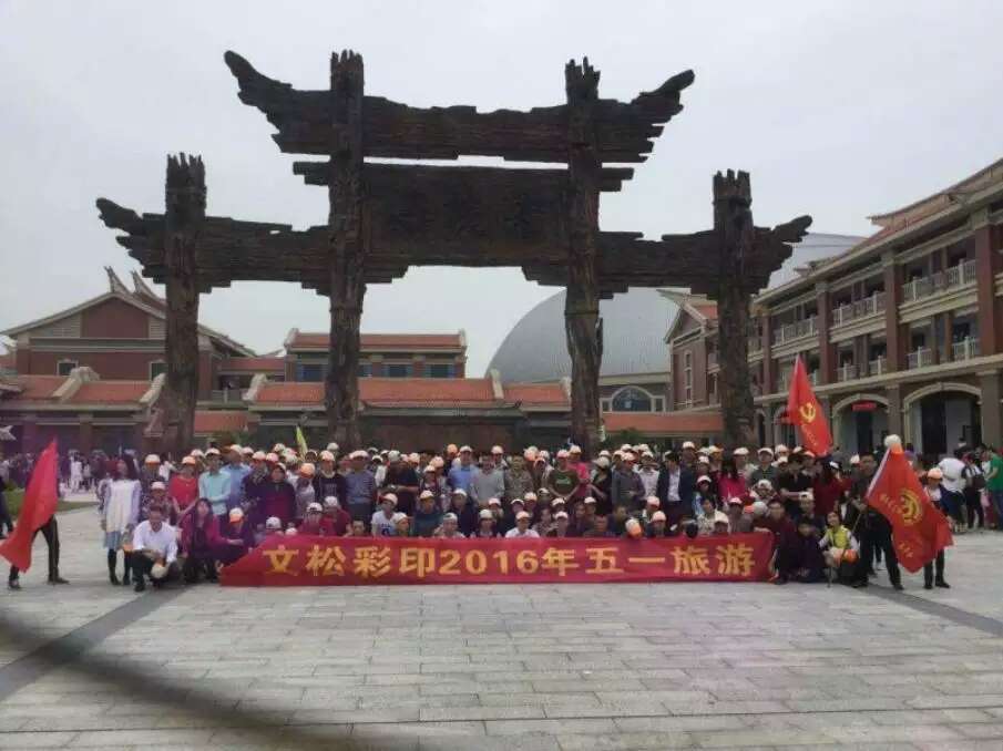 2016年5月1日,文松彩印100余名老員工乘坐2臺旅游大巴前往廈門古龍醬文化園、老院子、園博苑等地旅游參觀。